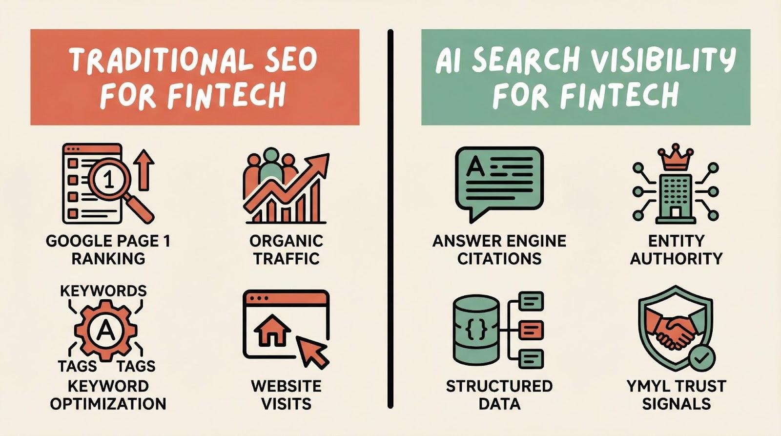 Fintech brands that rank well in traditional search often assume AI visibility will follow. It does not. These are separate systems with separate trust signals.